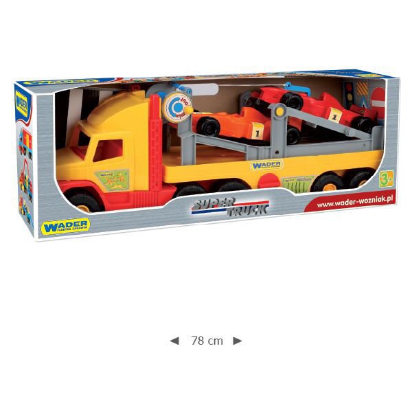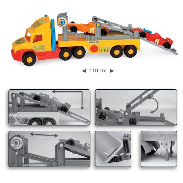 Ciężarówka-laweta o długości 77cm z odpinaną naczepą może służyć do przewożenia samochodów wyścigowych Formuły 1. Pojazd wyposażony jest w najazdy i wciągarkę, dzięki którym wyścigówki wciągane są na lawetę.