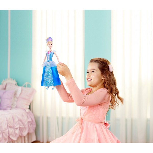 Teraz księżniczki gotowe są na prawdziwy bal - będą na mi błyszczeć podczas kręcenia piruetów. Obrót księżniczki sprawia, że diadem oraz naszyjnik zaczyna błyszczeć. Błyszcząca suknia stworzona z myślą o księżniczce, w charakterystycznej kolorystyce - jak z bajki!