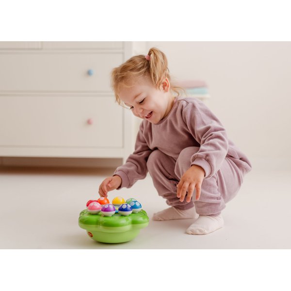 Zabawka posiada 4 tryby, dzięki czemu Twoja pociecha szybko się nią nie znudzi. Dziecko może liczyć kropki na grzybkach (tryb cyfry) i rozpoznawać kolory (tryb kolory). Edukacja muzyczna dostępna jest w trybie muzyka - maluszek może samodzielnej gry na zabawkowym instrumencie z grzybkami zamiast klawiszy. Ostatni tryb to gra, podczas której dziecko ćwiczy liczenie i nazywanie kolorów.