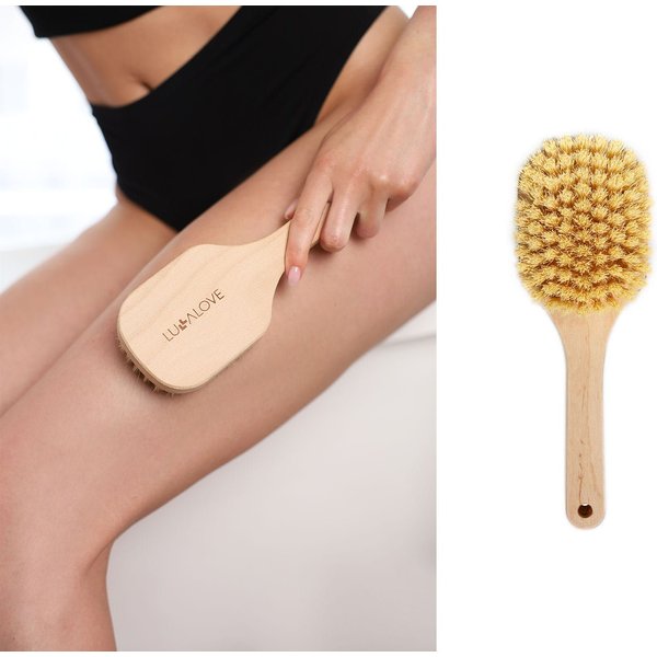Szczotka do masażu na sucho i mokro z rączką marki Lullalove to jedyny produkt na rynku, który możesz wykorzystać na dwa różne sposoby, bez ryzyka szybkiego zniszczenia szczotki przez wodę.