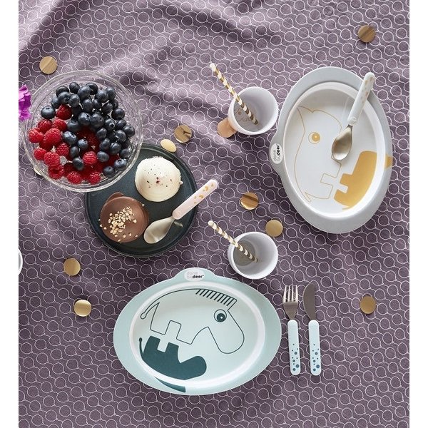 Zestaw sztućców marki Done By Deer to świetny wybór, jeśli chcemy zachęcić dziecko do samodzielnego spożywania posiłków. Składa się on z łyżeczki, widelca i bezpiecznego noża. Zaprojektowane z myślą o malutkich dziecięcych rączkach, będą idealnie leżały w dłoni malucha. Specjalnie wyprofilowane kształty ułatwią dziecku nabieranie odpowiednich porcji. Sztućce zostały wykonane ze stali nierdzewnej i ABS, a ich uchwyty wykonano z plastiku spożywczego dla największego bezpieczeństwa Twojego malucha. Zapakowane w kartonowe pudełko, będą praktycznym prezentem dla każdego dziecka.