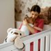 • W łapkach posiada magnesy, które umożliwiają zaczepienie maskotki w wózku czy łóżeczku,