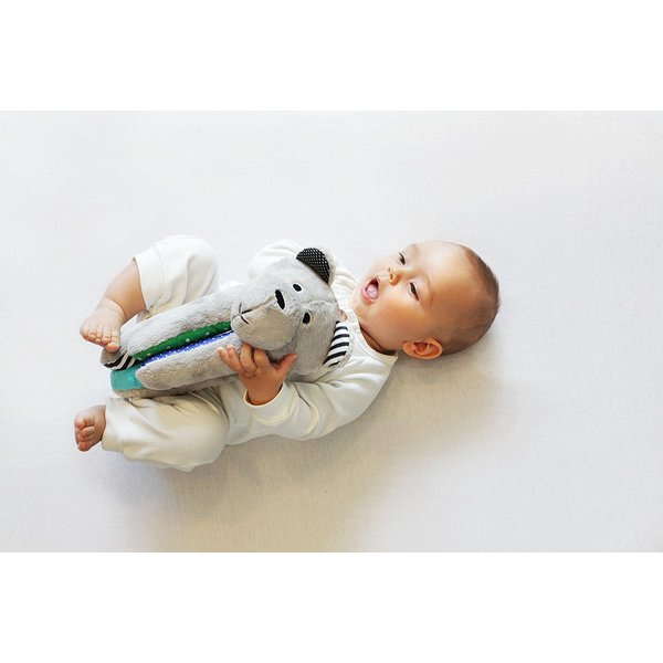 Przytulanka pozytywnie wpływa na rozwój maluszka. Delikatne szumy działają na zmysł słuchu, zaś intensywne kolory pobudzają zmysł wzroku dziecka