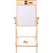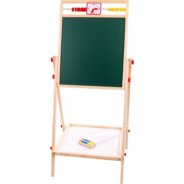 Tablica edukacyjna to dwa produkty w jednym: po jednej stronie znajduje się tablica magnetyczna, natomiast po drugiej stronie jest klasyczna tablica kredowa. Została wyposażona w liczydło, zegar z obrotowymi wskazówkami oraz zestaw magnetycznych akcesoriów, które urozmaicą zabawę. Taka forma zabawy z pewnością spodoba się dziecku i z przyjemnością będzie chciało do tego wracać - z taka tablicą zabawy nigdy nie będzie końca! Zestaw rozwija wyobraźnię dziecka oraz zdolności manualne.