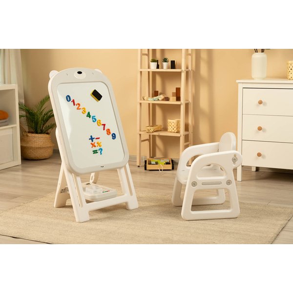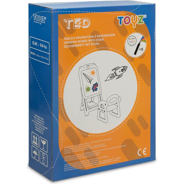 Tablica magnetyczna z krzesełkiem Ted Caretero to idealne rozwiązanie dla małych artystów. Dzięki tej tablicy nauka pisania i rysowania stanie się łatwa i przyjemna. Magnetyczna powierzchnia pozwala na przyczepianie kolorowych magnesów, co dodaje dodatkowej atrakcyjności i kreatywności. Zestaw zawiera również kolorowe markery i gąbkę. Możliwość regulacji wysokości tablicy pozwala na dostosowanie jej do potrzeb użytkownika. Prosta konstrukcja i łatwy montaż sprawiają, że korzystanie z tej tablicy jest proste i wygodne. Dodatkowo, tablica jest mobilna i stabilna, a solidna konstrukcja i wysokiej jakości materiały gwarantują jej długowieczność.