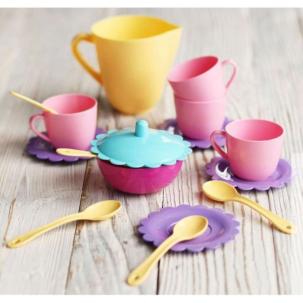 Komplet naczyń dla idealnej małej Pani domu z serii party world. Zestaw składa się z 17 elementów. W skład wchodzi: taca oraz komplet naczyń stołowych, w skład którego wchodzą między innymi: łyżeczki, kubeczki z podstawkami oraz dwa praktyczne dzbanuszki.