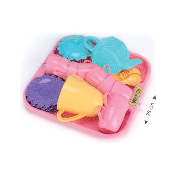 Komplet naczyń dla idealnej małej Pani domu z serii party world. Zestaw składa się z tacy oraz kompletu naczyń stołowych, w skład którego wchodzą między innymi: łyżeczki, kubeczki z podstawkami oraz dwa praktyczne dzbanuszki.
