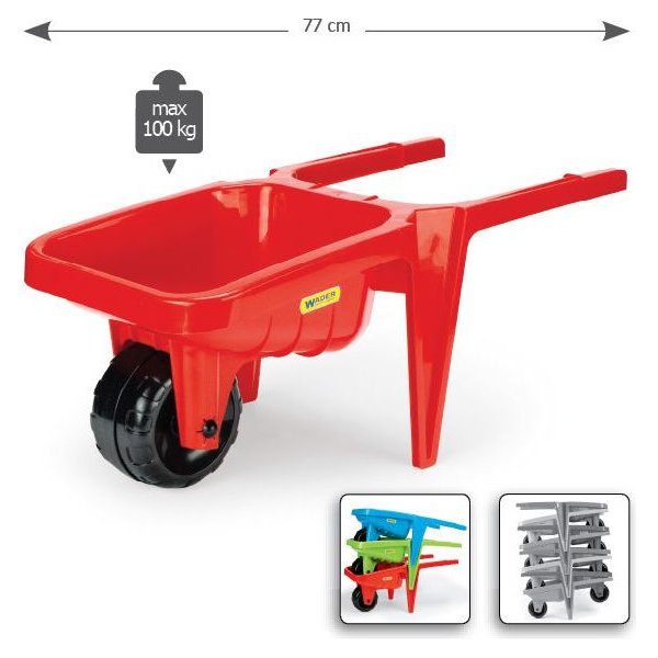 Taczka piaskowa GIGANT jest największą i najbardziej wytrzymałą taczką spośród dotychczas oferowanych modeli, jej udźwig to aż 100 kg. Taczka idealnie nadaje się do zabawy zarówno na plaży jak w ogrodzie czy w domu. Może służyć do przewożenia piasku, klocków czy innych przedmiotów.