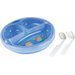Talerzyk posiada podziałkę na trzy części, co pozwoli na oddzielenie pokarmów od siebie i nie mieszanie się podczas jedzenia. W zestawie znajdują się sztućce (widelczyk + łyżeczka), bezpieczne i odpowiednio dopasowane do małych rączek dziecka. Talerzyk posiada wlew na ciepłą wodę, dzięki czemu jedzenie będzie podgrzewane i tak szybko nie wystygnie. Zamknięcie jest szczelne, woda nie wyleje się na zewnątrz. Antypoślizgowy krążek umieszczony na spodzie talerzyka utrudnia niekontrolowane przesuwanie talerza po powierzchni blatu lub stołu.