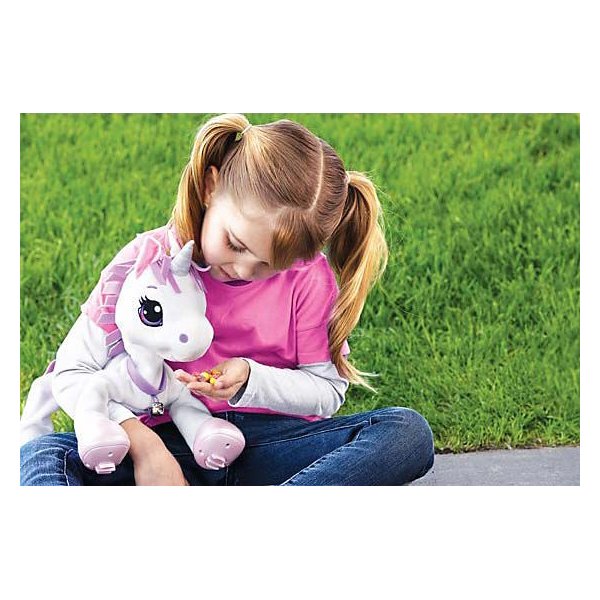 Jednorożce już od dawna podbijają serca małych dziewczynek! Jednak to nie taki zwykły jednorożec! Ten kolorowy pluszak stanie się najlepszym towarzyszem Twoje pociechy podczas wspólnych spacerów i nie tylko. Lila potrafi się poruszać, biegać, a nawet wykonywać przeróżne sztuczki. Do tego nie potrzebne są żadne baterie! Porusza się ona dzięki sprężynkom, które posiada w główce i łapkach. Jej futerko jest tak miękkie, że przytulanie się do niej będzie czystą przyjemnością! Przygarnij Lilę i naucz ją chodzić, a stanie się wierną koleżanką do zabawy!