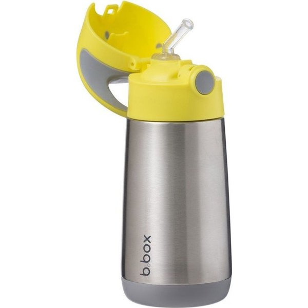 Innowacyjna termobutelka ze słomką marki B.Box świetnie nada się na spacery czy też w dłuższą podróż. Wykonana została z materiałów wysokiej jakości. Dzięki swojej podwójnej ściance ze stali nierdzewnej utrzymuje temperaturę przez około 8 godzin jeżeli chodzi o zimne potrawy oraz około 6 godzin przy ciepłych posiłkach! Butelka jest szczelna. Posiada chowaną słomkę, dzięki której dziecko nie wyleje zawartości oraz wygodny uchwyt, który został zaprojektowany z myślą o najmłodszych. Otwiera się nią dzięki przyciskowi z którym poradzą sobie nawet malutkie rączki. Otwierana wodoszczelna pokrywka uchroni słomkę przed zabrudzeniami w związku z czym będzie ona zawsze w gotowości. Sprawdzi się zarówno do szkoły, przedszkola czy na wycieczki rodzinne.