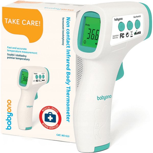 Bezdotykowy termometr na podczerwień od Babyono pozwoli na szybkie i precyzyjne zmierzenie temperatury co przy niemowlaku może być niezwykle trudne. Termometr ten pozwoli również określić jak ciepły jest płynny pokarm dla dziecka. Funkcja podświetlenia sprawi, że nie będzie konieczności używania do tego światła, co będzie ułatwieniem w nocy. Termometr zapisuje do 50 ostatnich pomiarów, co pozwoli na lepsze monitorowanie stanu zdrowia maluszka.
