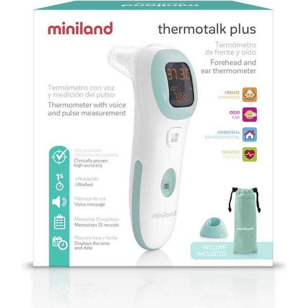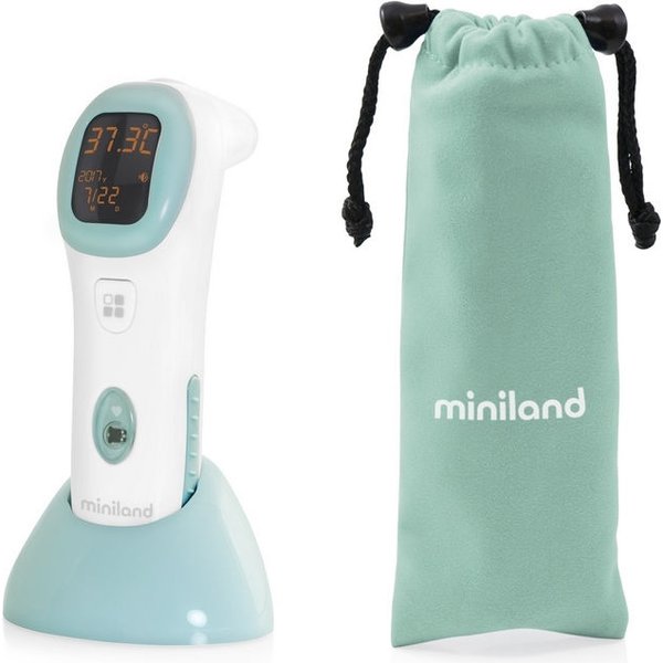 Mierzenie temperatury u maluszka to nie zawsze łatwe zdanie, zwłaszcza podczas choroby. Dlatego pomiar powinien być łatwy i szybki tak, aby dodatkowo nie drażnić osłabionego niemowlaka. Na pomoc przychodzi termometr na podczerwień od Miniland, który pozwoli na bezdotykowe zmierzenie temperatury ciała. Istnieją dwie możliwości pomiaru: na czole i w małżowinie usznej. Można nim również skontrolować temperaturę otoczenia. Zapamiętuje on 15 ostatnich pomiarów, a wynik każdego z nich może zasygnalizować komunikatem głosowym w 6 językach. Dodatkowo termometr posiada funkcję pomiaru pulsu, a jego rezultat otrzymamy już po 15 sekundach.