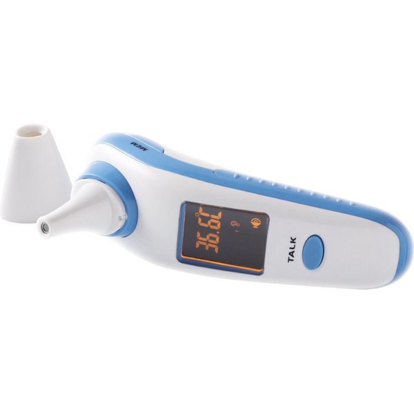 Termometr elektroniczny do czoła i ucha jest wygodny, łatwy w obsłudze. Posiada duży i czytelny wyświetlacz LCD. Pomiar temperatury następuje w ciągu 3 sekund, a przy wysokiej temperaturze pojawia się sygnalizacja świetlna oraz dźwiękowa. Jest wielofunkcyjny, gdyż w fazie nieużytkowania pełni funkcję termometru pokojowego oraz zegara. Nie wymaga stosowania kapturków ochronnych. Posiada również funkcje głosową informującą o wyniku pomiaru zarówno w wersji polskiej, jak i angielskiej.