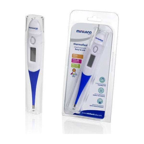 Termometr cyfrowy z miękką końcówką marki Miniland to bardzo praktyczny i wygodny w użyciu produkt. Termometr ten daje bardzo szybki pomiar i jest bardzo dokładny. Jego elastyczna końcówka chronić będzie przed niechcianymi urazami. Termometr wyposażony w alarm, który poinformuje nas o podwyższonej temperaturze (powyżej 37,8).