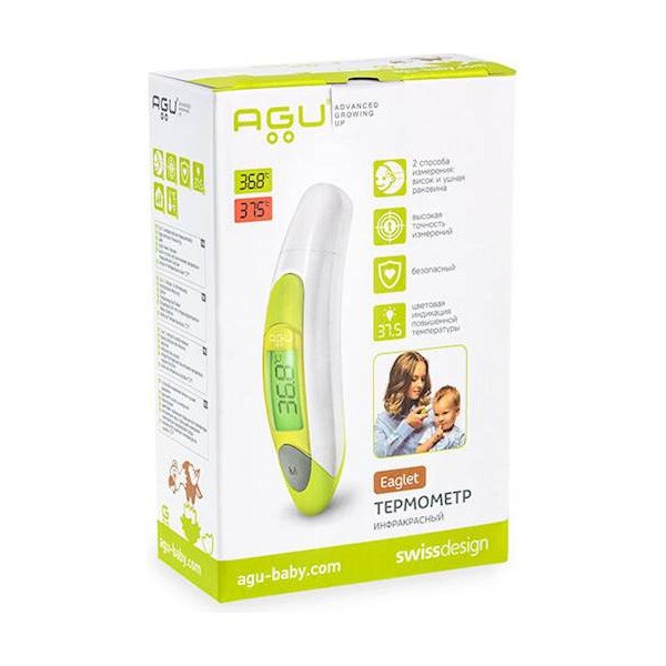 Mierzenie temperatury u maluszka to nie zawsze łatwe zdanie, zwłaszcza podczas choroby. Dlatego pomiar powinien być łatwy i szybki tak, aby dodatkowo nie drażnić osłabionego niemowlaka. Na pomoc przychodzi termometr na podczerwień od Agu Baby, który pozwoli na bezdotykowe zmierzenie temperatury ciała. Istnieją dwie możliwości pomiaru: na czole i w małżowinie usznej. Można nim również skontrolować temperaturę otoczenia.