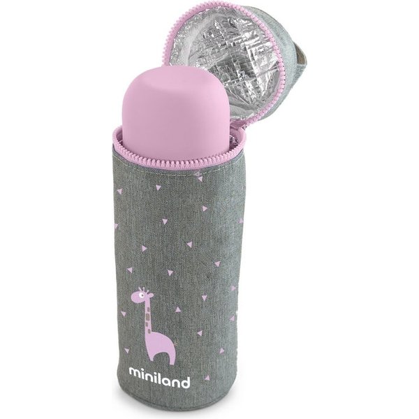 Termoopakowanie Azure-Rose na termos, butelkę 350ml od Miniland to praktyczny i atrakcyjny wizualnie sposób na zabezpieczenie napojów lub posiłków maluszka przed wystygnięciem i przegrzaniem.