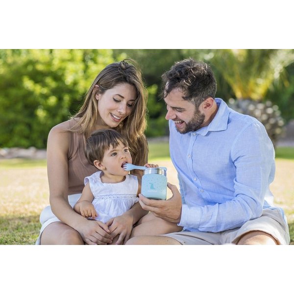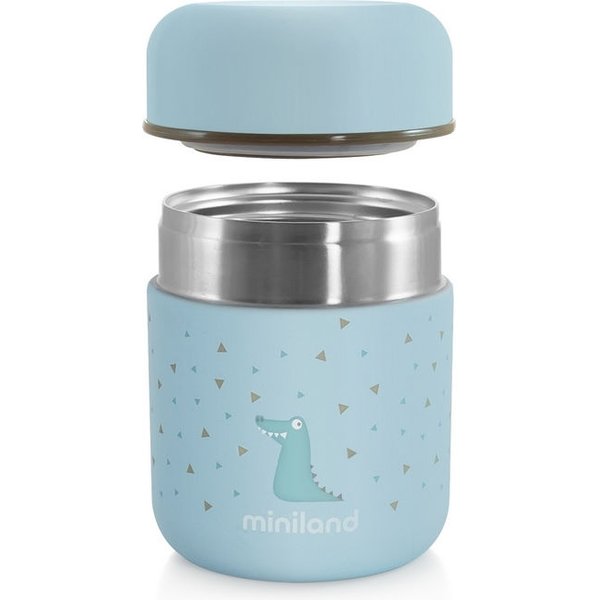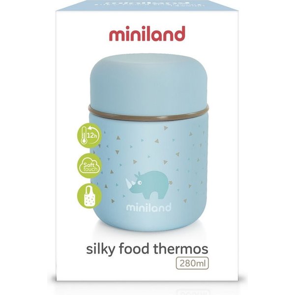 Termos marki Miniland wykonany został ze stali nierdzewnej i świetnie sprawdzi się do przechowywania posiłków. Jego pojemność to 280 ml. Termos posiada podwójną ściankę ze stali nierdzewnej oraz izolacyjną ściankę zewnętrzną. Potrafi utrzymać ciepło lub zimno nawet do 12 godzin. Możemy go zabrać ze sobą na spacer lub w podróż, a to za sprawa izotermicznemu etu, które dołączone jest do termosu.