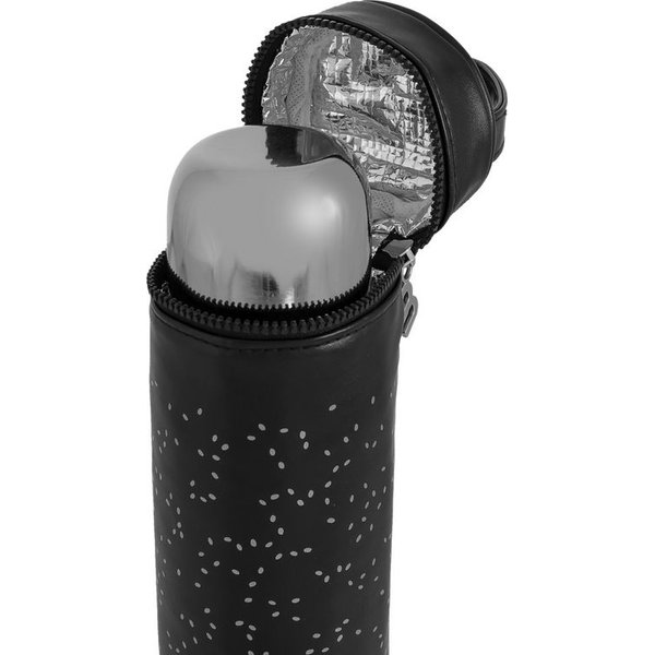 Termos posiada przycisk blokujący, który zabezpieczy przed przeciekaniem. Zamknięcie termosu może służyć również jako kubeczek do picia - co jest bardzo praktyczne. Do zestawu została dołączona torba izotermiczna, dzięki której termos dodatkowo jest chroniony przed zmianami temperatury otoczenia.