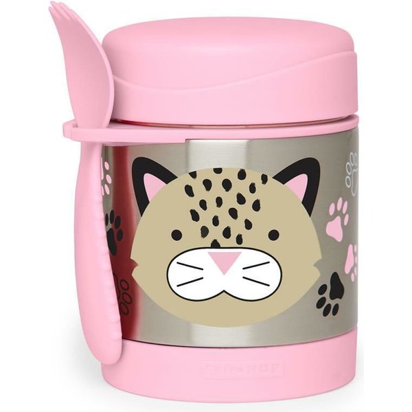 Praktyczny, designerski termos o pojemności 325 ml przyda się każdej mamusi podczas spacerów ze swoją pociechą. Termos pomieści odpowiednią ilość zupki lub innego posiłku utrzymując jego temperaturę. Po otwarciu jedzenie będzie ciepłe i gotowe do spożycia dla naszego małego łasucha. Dodatkowo do termosu dodano uchwyt na sztućce turystyczne. W ofercie także pozostałe produkty z kolekcji takie jak sztućce, talerzyk, miseczka, śliniaczek i plecak. Skomponuj cały zestaw!