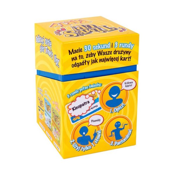 Zbierz swój zespół i odgadujcie hasła. Macie 3 rundy i tylko 30 sekund na odgadnięcie jak największej ilości kart! W rundzie pierwszej możemy opisywać hasło na różne sposoby, w rundzie drugiej możemy wypowiedzieć już tylko jedno słowo po którym drużyna musi odgadnąć hasło, zaś w rundzie trzeciej rozpoczynają się kalambury! Zakazane jest używanie jakichkolwiek słów i dźwięków, dozwolona jest tylko pokazywanie.