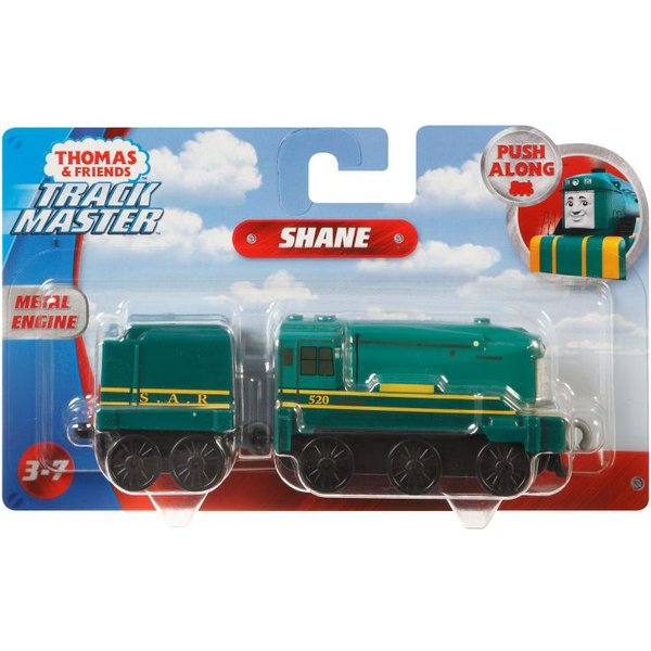 Shane ma zawsze ważną misję i dużo zajęć. Pomóż mu w pracy! Lokomotywie kręcą się koła, pchnięta mknie po torach. Dzięki zaczepom można łączyć je ze sobą!