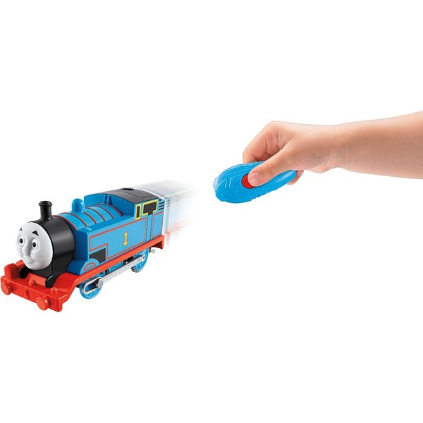 Lokomotywa Tomek teraz w nowej, zdalnie sterowanej wersji! Dzięki pilotowi dołączonemu do zestawu możesz kontrolować swój pojazd. Wciśnij przycisk na pilocie, a Tomek zacznie jechać przed siebie. Po ponownym przytrzymaniu przycisku lokomotywa zatrzyma się.