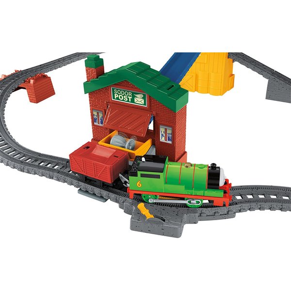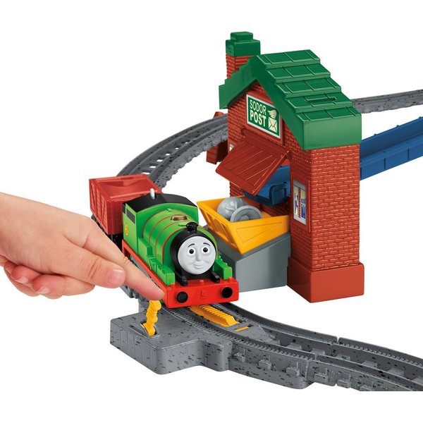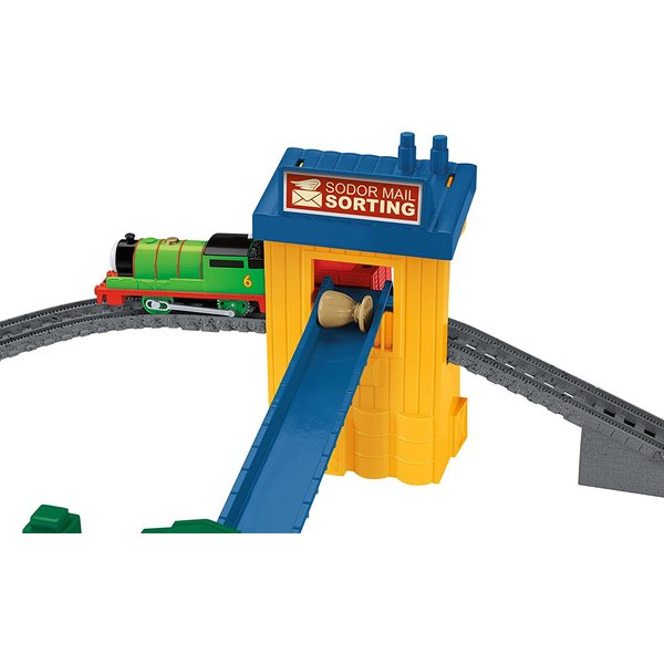Piotrek ma ważną misję, ma dostarczyć przesyłkę na pocztę. Lokomotywa dojeżdża do stacji sortowania, zrzuca przesyłkę z wagonika na pochylnię i paczka zostaje dostarczona! Piotrek rusza dalej- dojeżdża do budynku poczty, paczkę można załadować z powrotem. Lokomotywka zatrzymuje się przy okienku i rusza po przestawieniu dźwigni. Zabawa zaczyna się od początku!