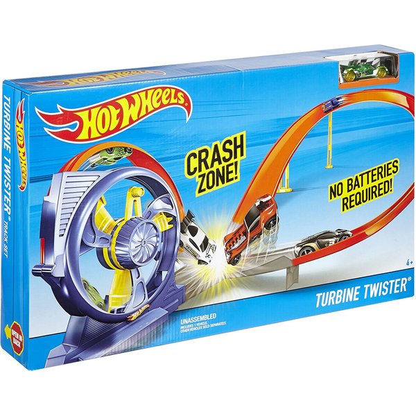 Z tym zestawem możesz zbudować tor na którym doświadczysz super przeciążeń! Odpal autko i znajdź się w środku moto turbiny nada ona odpowiedniej prędkość by pokonać cały tor - szykuje się wspaniała zabawa!
