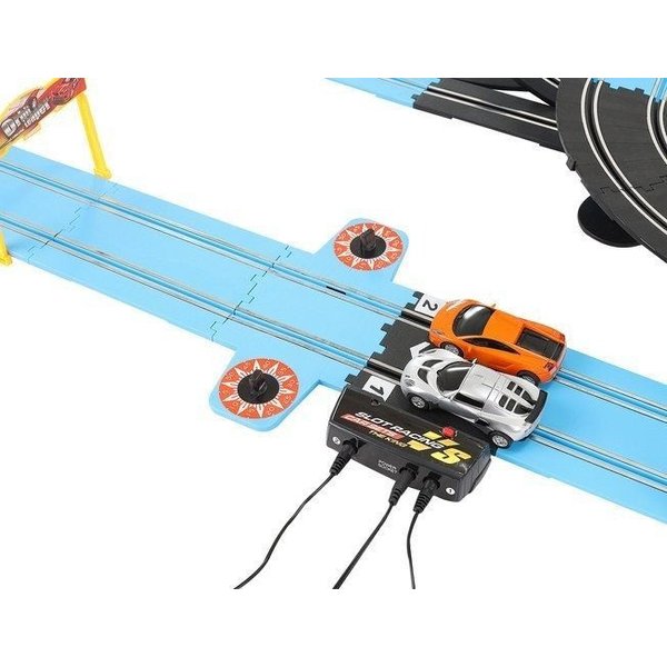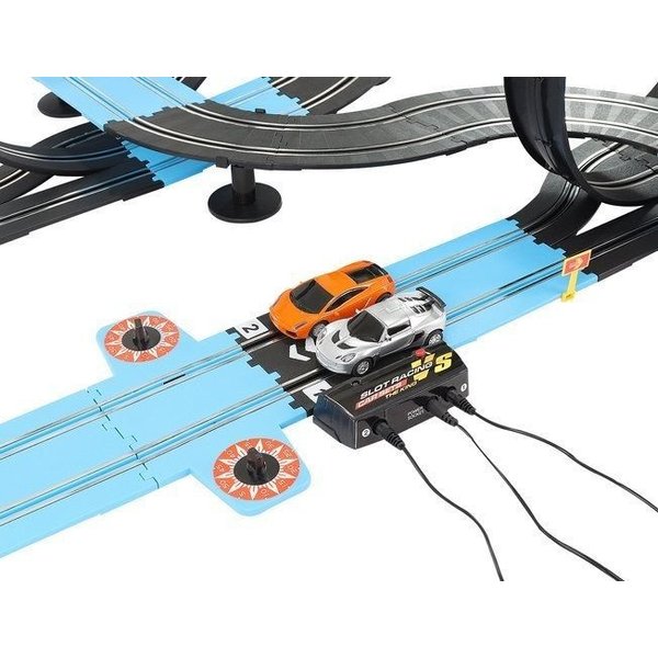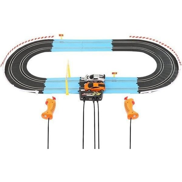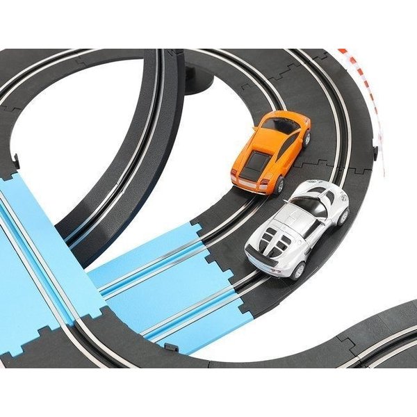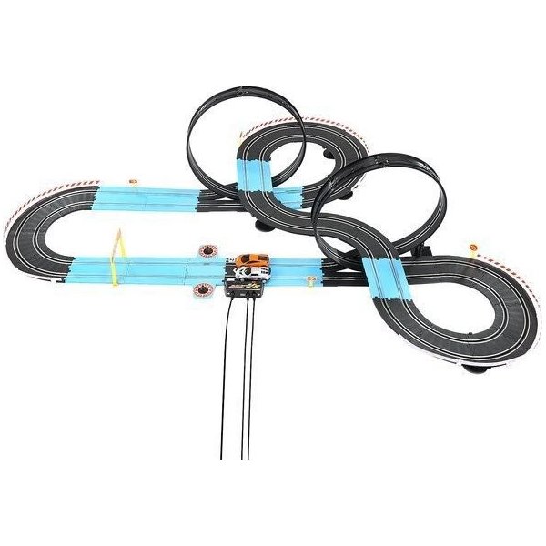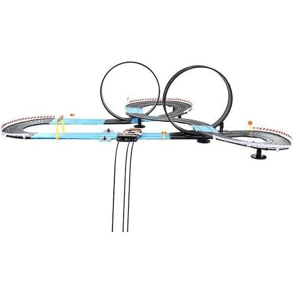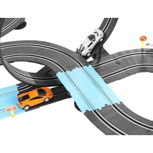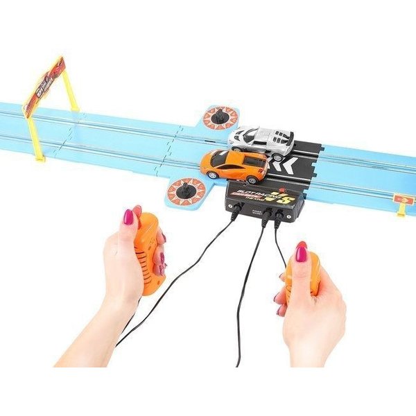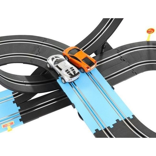 Tor wyścigowy dostarczy niesamowitych wrażeń podczas wyścigu. Elementy umożliwiają wiele wersji ułożenia toru. Dzięki czemu zabawa za każdym razem będzie pełna kreatywnego myślenia i technicznych umiejętności. Dodatkowo można ułożyć z nich dwie pętle, które dostarczą z pewnością wiele emocji. Jak wiadomo do wyścigu potrzeba co najmniej dwóch uczestników, dlatego zestaw wyposażony został w dwa samochody zdalnie sterowane. Dodatki w postaci znaków ostrzegawczych czy barierek dodadzą torowi autentyczności.