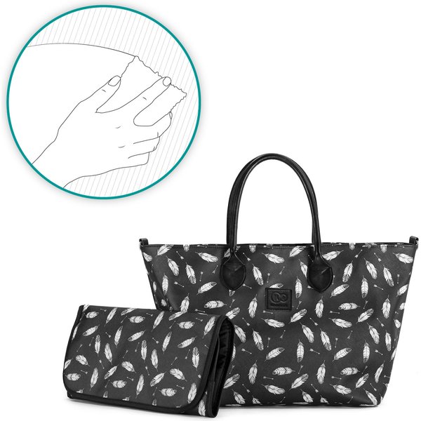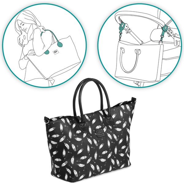 - W zestawie uchwyty na wózek i mata do przewijania pasująca do torby.