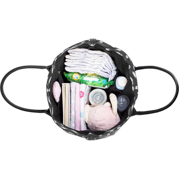W zestawie znajdują się również uchwyty, które pozwolą zaczepić torbę na różnego rodzaju wózkach. Oprócz tego torba wyposażona jest również w matę do przewijania, która wzorem pasuje do torby, a która jest niezbędna podczas pobytu z maluchem poza domem.