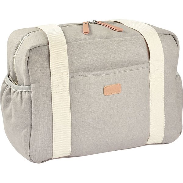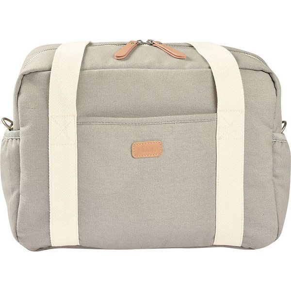 Model posiada uchwyty do noszenia w ręce, długi pasek z napami do zapięcia na ramie wózka lub do noszenia na ramieniu. W tyle torby znajduje się szeroki pasek, który możesz zaczepić na uchwycie walizki, kiedy wybierasz się z dzieckiem w podróż.