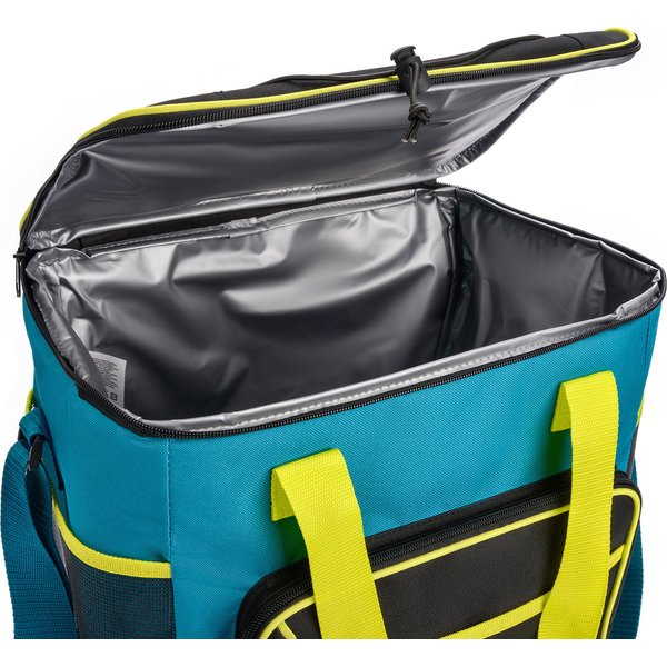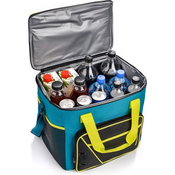 Torba ma dużą pojemność - aż 30 litrów pojemności, dzięki czemu możesz mieć pewność, że zmieścisz posiłki i napoje nie tylko dla maluszka, ale i dla całej rodziny. Dzięki wewnętrznej warstwie izolacyjnej jedzenie będzie miało niską temperaturę nawet przez kilka godzin, co pomoże ochronić je przed zepsuciem. To doskonała alternatywa dla ciężkich, tradycyjnych lodówek turystycznych. Jeśli torba przestanie być potrzebna, możesz ją złożyć, żeby zajmowała mniej miejsca. Komora główna zamykana jest na dwukierunkowy zamek błyskawiczny, co bardzo ułatwia do niej dostęp. Dodatkowym atutem jest także zewnętrzna kieszeń zamykana na suwak oraz boczne kieszenie z siatki w sam raz na dziecięce akcesoria potrzebne podczas posiłków.