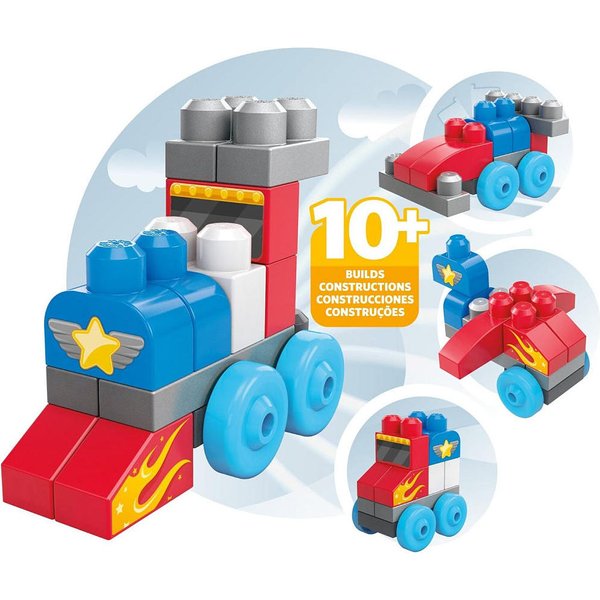 Zestaw klocków z klockami o różnych kształtach pozwala na zbudowanie ponad 10 różnych pojazdów i budowli! Całość zapakowana w ekologiczną torbę (wolną od PVC), zapinaną na suwak - świetny prezent dla każdego malucha.