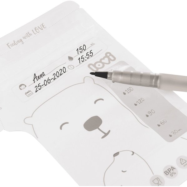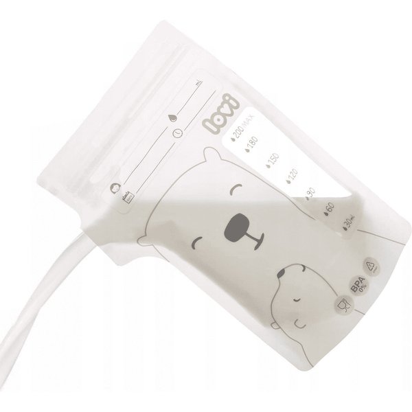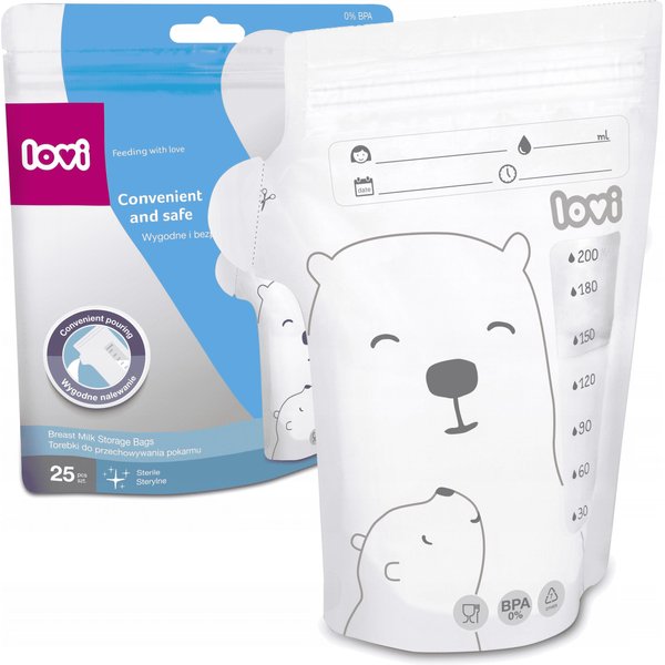 Torebki do przechowywania pokarmu od Lovi, które pomieszczą aż 200 ml mleka. Pozwolą na zebranie odpowiedniego zapasu tak, aby mama mogła wyjść z domu czy pójść do pracy bez obaw, że maluszkowi zabraknie jedzenia. Wyposażone w szczelne, podwójne zamknięcie, które doskonale ochroni zawartość przed rozlaniem się. Specjalnie wyprofilowany dzióbek będzie doskonałym ułatwieniem podczas przelewania mleka do butelki.