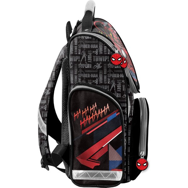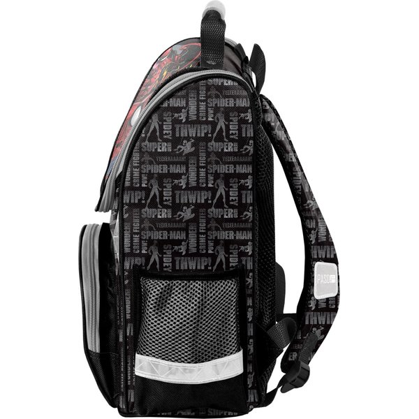 Komfortowy w noszeniu tornister posiada anatomicznie ukształtowane, wzmocnione i usztywnione plecy oraz wzmocniony dół dla większej wygody. Miękko wyściełane szelki mają regulację do wzrostu użytkownika. Plecak jest wyjątkowo trwały, a poliestrowy materiał z ciekawą, dziecięcą grafiką prosto z bajki Marvela posiada właściwości wodoodporne. Liczne elementy odblaskowe zwiększają bezpieczeństwo małego ucznia po zmroku. Tornister posiada jedną komorę główną na książki i zeszyty. W środku znajduje się także przegroda, pomagająca posegregować wszystkie rzeczy. Z przodu plecaka jest jeszcze kieszeń na drugie śniadanie, a po bokach jedna zamykana kieszeń na drobiazgi, a druga na bidon z wodą.
