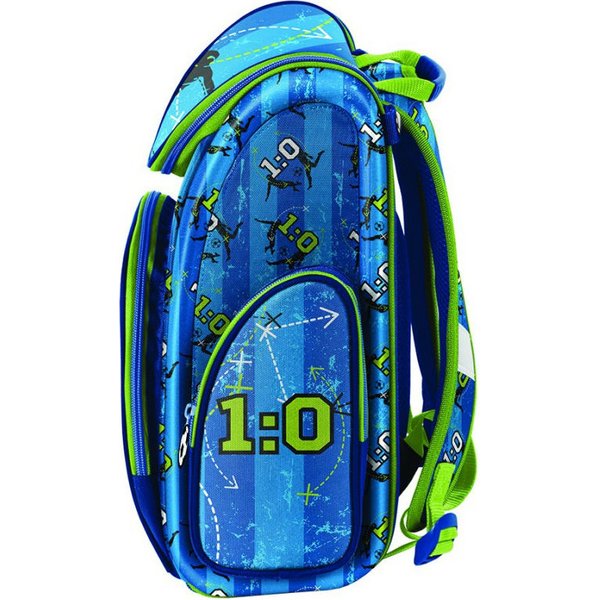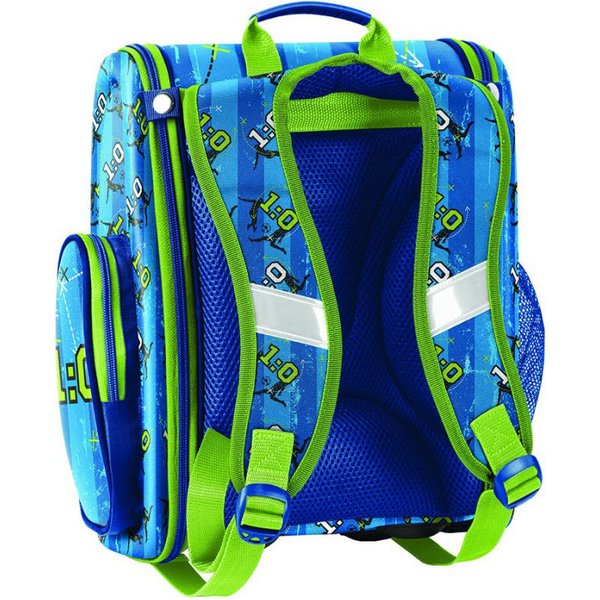 Tornister szkolny od Paso dla miłośników piłki nożnej! Z takim ekwipunkiem dziecko chętnie będzie chodziło do szkoły. Posiada on specjalną budowę, która umożliwi odpowiednią organizację. Wyposażony w jedną, pojemną komorę zapinaną na zamek, która pozwoli bezpiecznie przechować zawartość. Wewnątrz znajduje się przegródka z siatki oraz druga - przeźroczysta - na wizytówkę. Dodatkowe kieszenie znajdują się na froncie oraz po bokach - jedna z siatki, druga na zamek. Boczna kieszonka bez problemu przechowa butelkę czy bidon na napój. Dla zwiększenia bezpieczeństwa, plecak wyposażony został w elementy odblaskowe, które zwiększą widoczność dziecka. Plecy zostały usztywnione gąbką i odpowiednio wyprofilowane, a całość pokryta siatką. Regulacja szelek pozwoli dopasować rozmiar idealnie do wzrostu dziecka, a miękki materiał, którym zostały pokryte zapewni odpowiedni komfort. Również dno plecaka jest odpowiednio usztywnione, a całość uszyta została z materiału wodoodpornego.