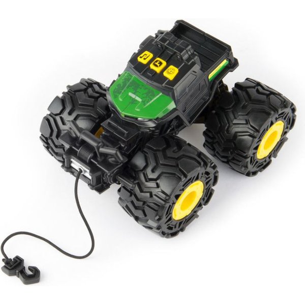 Ten model ciągnika rolniczego przyciąga wzrok dużą precyzją wykonania i szczegółowo odzwierciedla wszystkie szczegóły wyglądu prawdziwego pojazdu marki John Deere. Maluch na pewno szybko odkryje wszystkie możliwości tej zabawki: odczepianą wciągarkę, którą można ręcznie obracać, światełka i dźwięki prawdziwej rolniczej maszyny. Duże i bardzo sprężyste gumowe opony sprawdzą się w trakcie jazdy na każdej powierzchni zarówno w domu, jak i w piaskownicy - w końcu to jest traktor do zadań specjalnych!