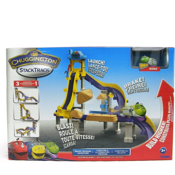 Zestaw Trening hamowania można złożyć na 3 różne sposoby, ale dodatkowo może być także łączony z innymi torami z serii Stacyjkowo, co pozwala na konstruowanie całego kolejowego miasteczka. Dzięki systemowi StackTrack tory można układać także w górę, tworząc wielopoziomowe konstrukcje.