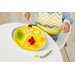 Talerz posiada boczne uchwyty, które są przydatne przy przenoszeniu, natomiast silikonowa podstawa sprawia, iż talerzyk pozostaje na swoim miejscu i nie przemieszcza się po stole.