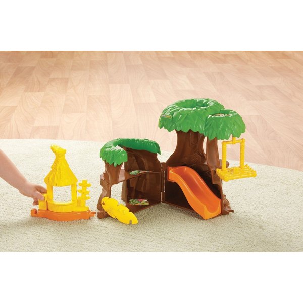 W zestawie znajduje się zjeżdżalnia do zabawy, huśtawka dla małpki, drzewka na których mogą siedzieć zwierzaczki i wiele innych atrakcji i niespodzianek.