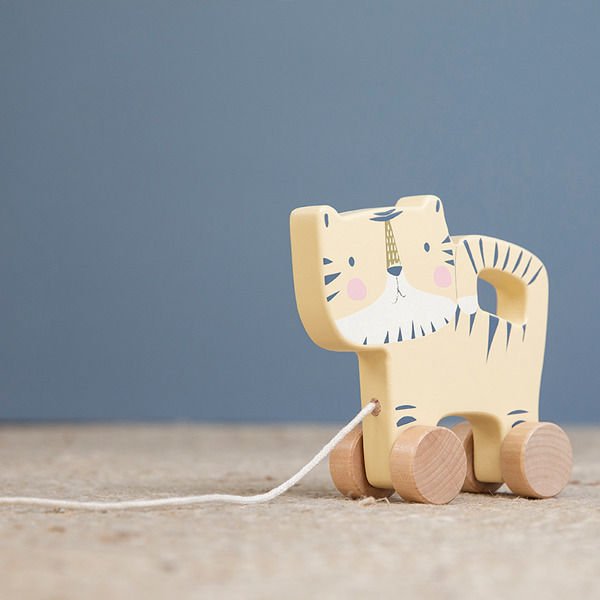 Tygrysek do ciągnięcia tej marki to idealna zabawka, która wspomoże dziecko w nauce chodzenia. Tygrysek został wykonany bardzo estetycznie, jego szeroko rozstawione koła sprawiają, że zabawka jest stabilna. Tygrysek posiada sznureczek, za który dziecko może ciągnąć.