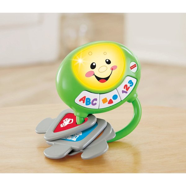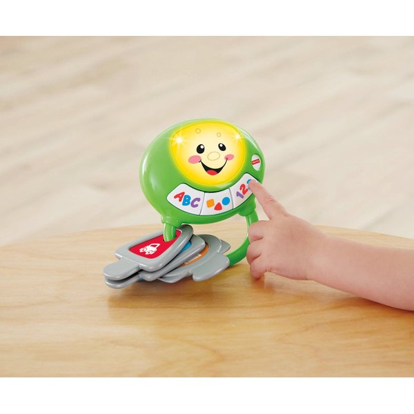 Na zabawce znajdują się trzy kolorowe przyciski, po naciśnięciu maluch usłyszy nazwy i piosenki dotyczące kształtów liczb lub literek. Klucze odtwarzają piosenki o tych przedmiotach, w języku polskim. Zabawkę można zabrać ze sobą do wózka, by kontynuować edukacyjną zabawę na spacerze.