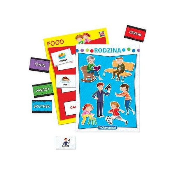 Gra pomoże nauczyć się podstawowych słówek w języku angielskim!Maluch pozna nazwy członków rodziny, popularnych produktów żywnościowych, zabawek i wiele więcej. Twoja pociecha będzie się świetnie bawić dopasowując karty z wyrazami do odpowiednich ilustracji, czy słów.Dzięki połączeniu zabawy z nauką maluch będzie chętnie poznawał język angielski.