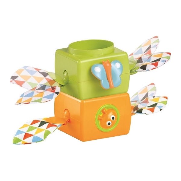 Kolorowa piramidka w kształcie kwiatuszka to zabawa pełna niespodzianek! Każda z trzech elementów łodygi posiada szeleszczące listki oraz inną atrakcję. Jest tu klekoczący kwiatuszek do przekręcania, grzechocząca biedroneczka oraz motylek wydający dźwięk przy trącaniu w górę i dół.