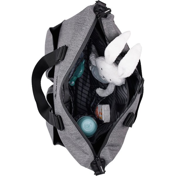 - dwie otwarte kieszenie z przodu torby na często wyjmowane akcesoria, takie jak pluszak, śliniak lub chusteczki,