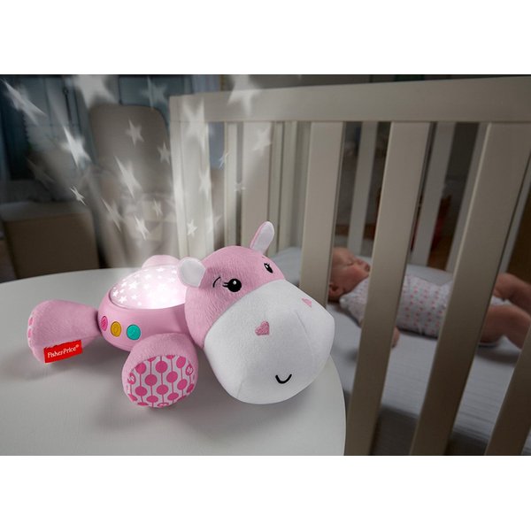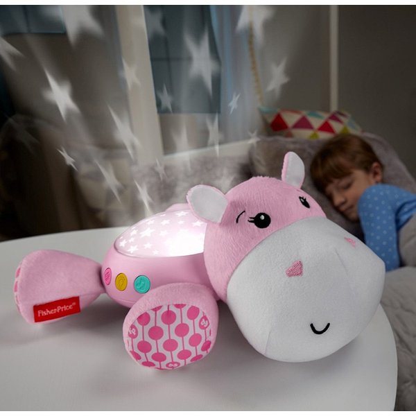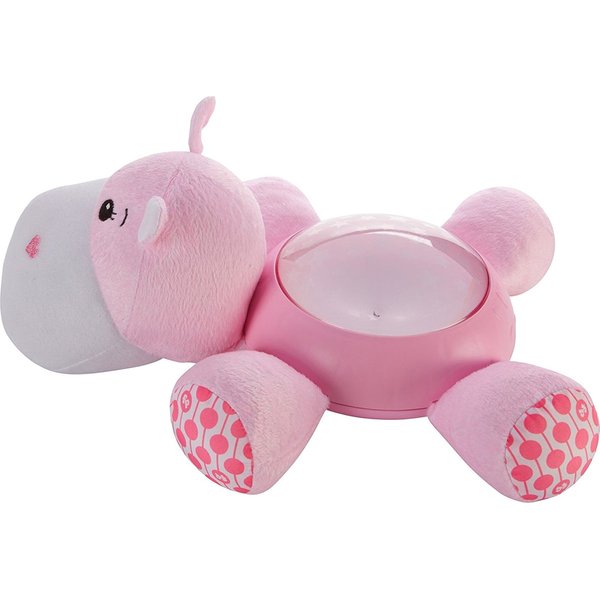Hipopotamka z projektorem można położyć na komodzie lub blacie stołu, aby pomóc uspokoić dziecko, wypełnić pokój gwiezdnym pokazem światełek i odgrywać przez 30 minut kojące kołysanki, odgłosy przyrody lub szum biały! Dziecko w mgnieniu oka odpłynie do krainy kolorowych snów!