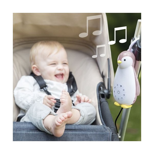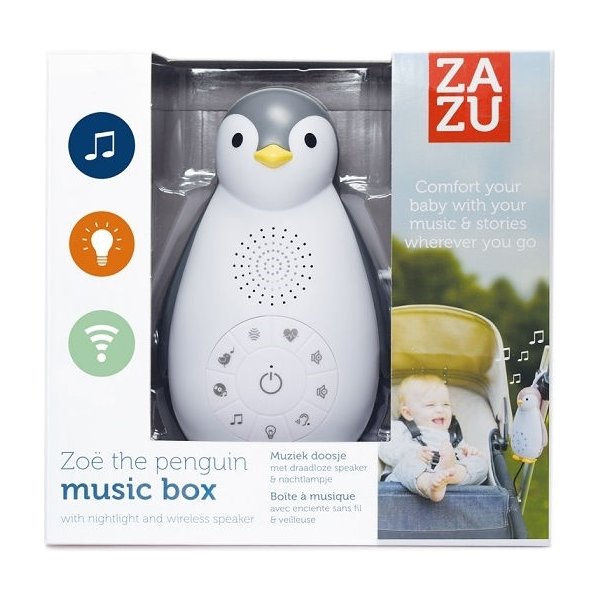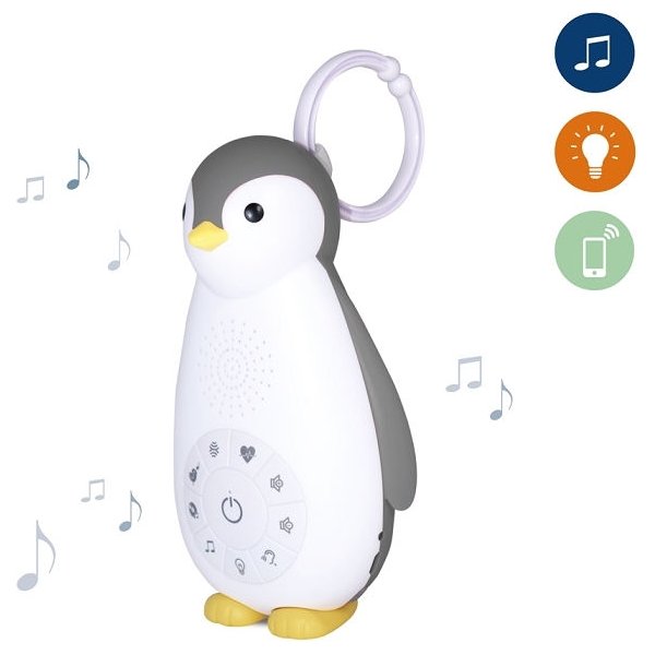 Pingwin Zoe pomoże dziecku spokojnie zasnąć. To lampka i głośnik bezprzewodowy w jednym. Pingwinek emituje kilka kojących dźwięków: odgłos bicia serca, wodospad, dźwięki natury, muzykę oraz kołysanki. Wbudowany głośnik bezprzewodowy pozwoli na słuchanie ulubionych piosenek lub bajek nawet przez całą noc. Dzięki łączności Bluetooth i połączeniu z urządzeniem mobilnym możemy mieć nieograniczony dostęp do muzyki lub bajek.