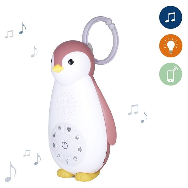 Pingwin Zoe pomoże dziecku spokojnie zasnąć. To lampka i głośnik bezprzewodowy w jednym. Pingwinek emituje kilka kojących dźwięków: odgłos bicia serca, wodospad, dźwięki natury, muzykę oraz kołysanki. Wbudowany głośnik bezprzewodowy pozwoli na słuchanie ulubionych piosenek lub bajek nawet przez całą noc. Dzięki łączności Bluetooth i połączeniu z urządzeniem mobilnym możemy mieć nieograniczony dostęp do muzyki lub bajek.
